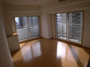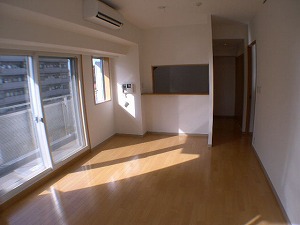 | Bタイプは2LDKです。 ここはリビングルーム。 床暖房付。窓からの眺めもよいですねえ。 |