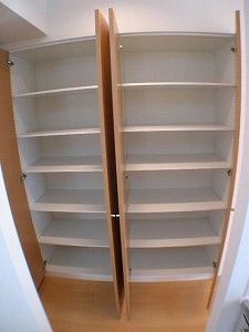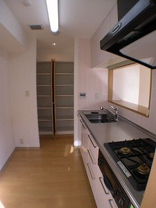 | 充実キッチン! | キッチンの入口付近には収納棚があります。 |