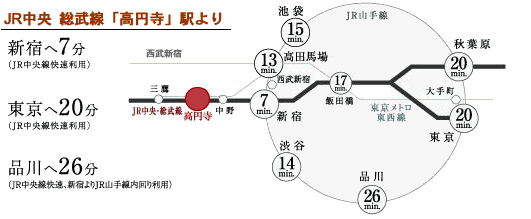 ※表示分数は、日中平常時の標準要時間です。待ち時間、乗り換え時間は含まれておりません。