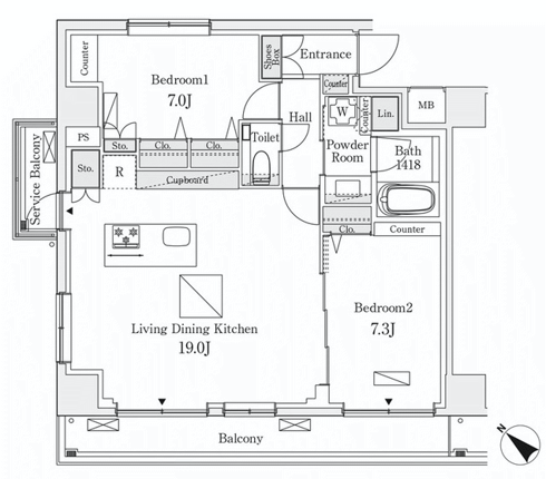 | 404号室 | 2LDK | 70.53㎡ | 545,000円 | 20,000円 | 1ヶ月 | なし | 即入居可 |